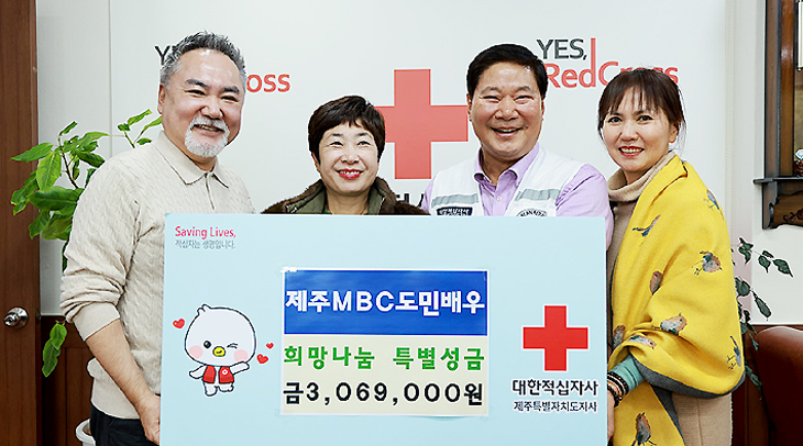 제주MBC도민배우들은 불우이웃돕기 자선바자회를 통해 모금된 수익금을 대한적십자사 제주도지사(회장 정태근)에 전달했다.