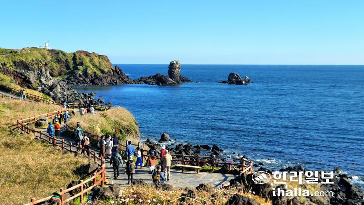 [한라일보] 제주도에서 제일 먼저 해가 뜨는 곳, 성산포를 향하여 '2025 제주섬 글로벌 에코투어 11차' 버스는 힘차게 달렸다. 파랗다 못해 푸른 가을 하늘 아래에 은빛 억새가 일렁이는 들판은 가을의 절정이다.