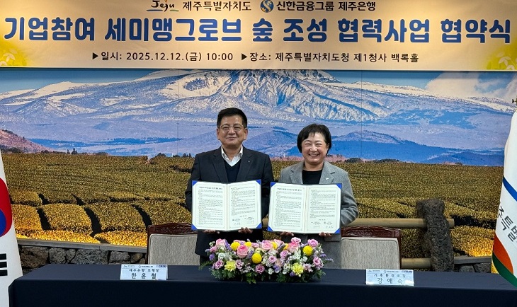 제주도는 12일 제주은행과 ‘세미맹그로브 숲 조성’업무협약을 체결했다고 밝혔다.