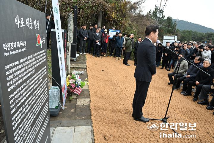 이날 오영훈 지사는 "박진경은 '제주4·3진상보고서'에서 양민 학살의 주범으로 기록된 인물"이라며 "대한민국 국민을 학살한 주범에게 국가유공자 증서가 발급되는 현재의 잘못된 제도에 깊은 유감을 표한다"고 밝혔다. 이어 "제주도는 앞으로도 제주4·3의 진실과 평화·인권의 가치를 훼손하려는 시도에 단호히 맞설 것"이라고 덧붙였다.