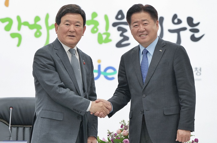 김광수 제주자치도교육감과 오영훈 제주지사. 한라일보DB