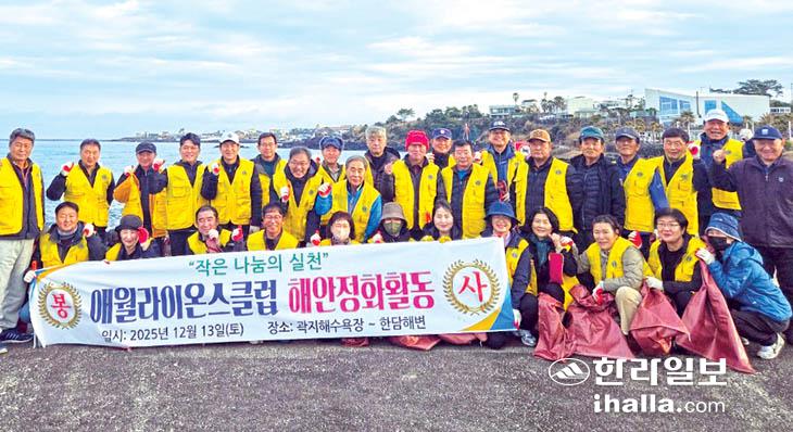 애월라이온스클럽(회장 강종우)은 지난 13일 회원 40여 명이 참석한 가운데 제주시 애월읍 곽지해수욕장~한담 산책로 일대에서 환경정화 활동을 진행했다.
