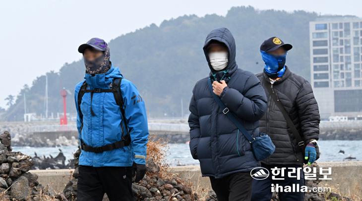 매운바람 부는 날… 중무장한 관광객들