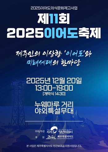 [한라일보] 청년세대들에게 제주도민들의 이상향 '이어도'의 의미를 되새기는 해양문화축제인 '제11회 이어도축제'가 오는 20일 제주시 누웨마루거리 야외특설무대에서 열린다.