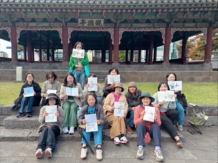 이번 전시는 지난 9월 18일부터 11월 6일까지 총 8회에 진행된 '길 위에 4·3 드로잉' 프로그램의 결과물이다. 김잔디 제주다크투어 대표, 김영화 그림책 작가와 함께한 일반 참가자 18명이 '삼도리(현 제주시 삼도2동)'를 직접 걷고 보고 느끼며 그 속에 스며 있는 '4·3의 기억'을 펜드로잉으로 담아 기록으로 남겼다.