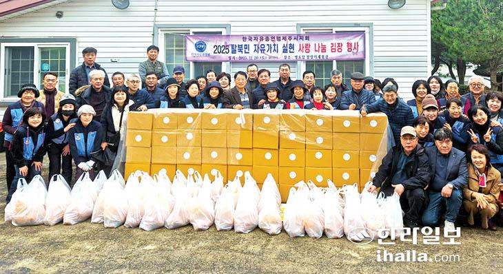 한국자유총연맹 제주시지회(회장 양문길)는 지난 20일 제주시 명도암 참살이 체험관에서 '2025 탈북민 자유가치 실현 사랑 나눔 김장'행사를 개최했다.