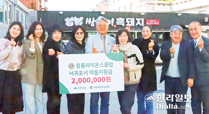 초록우산 제주지역본부(본부장 김희석)는 지난 22일 서귀포청룡라이온스클럽(회장 문영옥)으로부터 아동지원금 200만원을 전달받았다.
