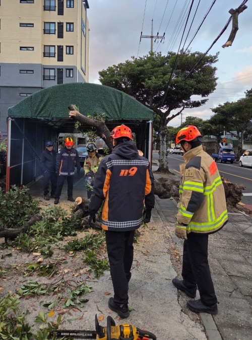 전날 오전 8시59분에는 서귀포시 동홍동에서 강풍에 담벼락 일부가 무너졌고 서귀포시 강정·서호·남원·성산을 비롯해 제주시 구좌읍 등에서도 강풍에 나무가 쓰러져 소방당국이 안전조치에 나섰다. 이밖에 통신선 날림, 간판 흔들림 신고도 접수됐다.