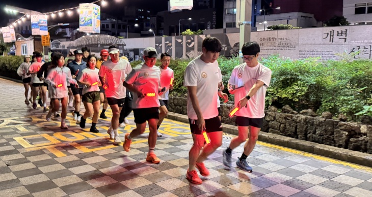 지역 청년 러닝크루로 이뤄진 '삼다! 구보 보안관'들이 제주시 원도심을 뛰며 야간 방범순찰을 하고 있다. 제주자치경찰단 제공