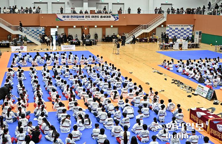 29일 제주복합체육관에서 제1회 한라일보배 전도 태권도 품새대회 개회식이 열리고 있다. 강희만 기자