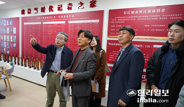 제주도기자협회 회원들은 장쑤성기자협회 사무실에 마련된 ‘기자의 집’ 공간과, 1938년에 창간된 신화일보의 역사를 소개하는 ‘신문역사관’을 참관했다.