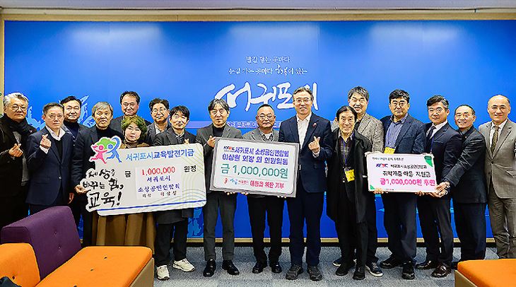 서귀포시 소상공인연합회(회장 이상철)는 지난 26일 서귀포시청을 방문해 서귀포시 교육발전기금, 초록우산 제주본부, 제남아동센터에 각 100만원씩 총 300만원의 후원금을 기탁했다.