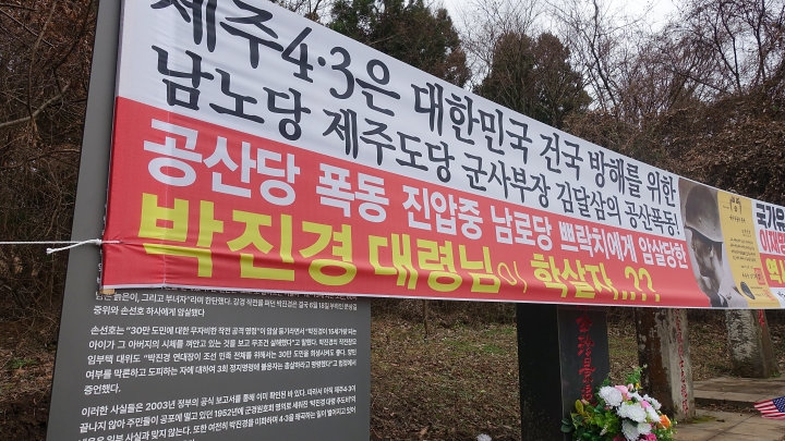 ‘진실의 비’ 가린 4·3 왜곡 현수막 또다시 논…