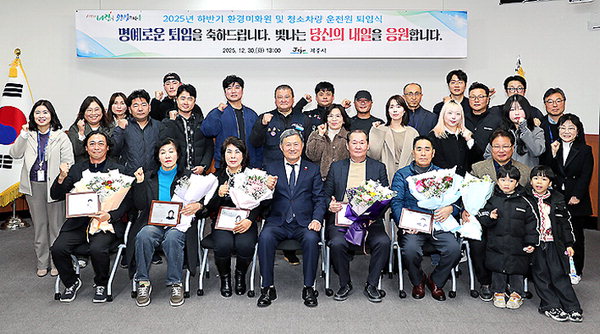 [한라일보] 제주시는 지난달 30일 시청 본관 회의실에서 정년을 맞아 명예롭게 퇴직하는 환경미화원 등 9명의 퇴임식을 개최했다.
