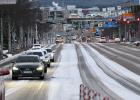 2일 대설특보가 발효되면서 내린 눈으로 혼잡을 빚고 있는 제주시내 중앙로. 제주기상청은 3일 오전까지도 눈발이 계속될 것으로 예보했다. 강희만 기자
