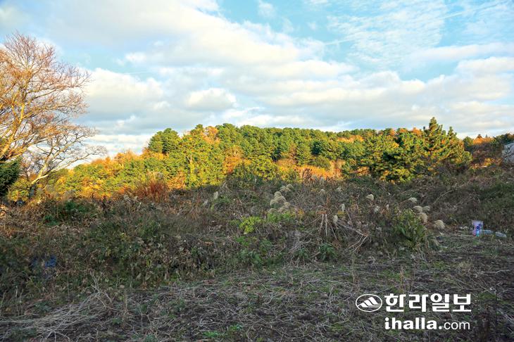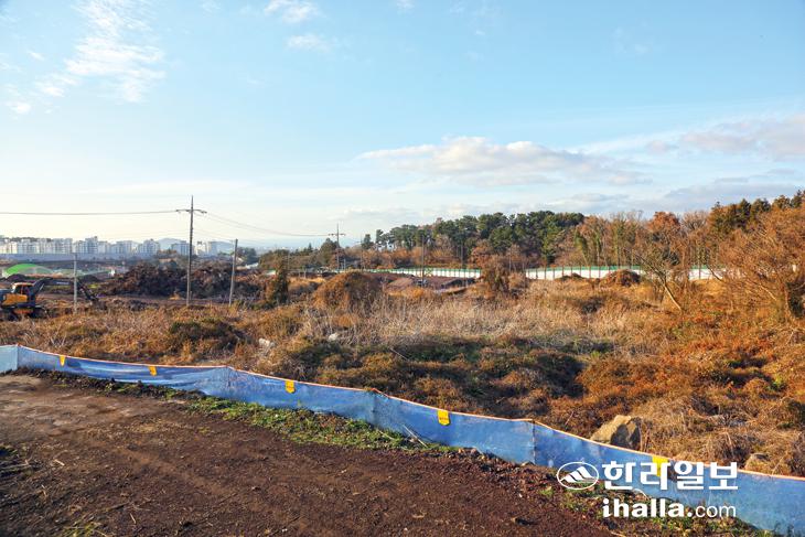 들레오름 남쪽 등성이 월평동 다라쿳 일대. 제주첨단과학기술단지 2단지 부지 조성 공사가 한창이다. 김찬수