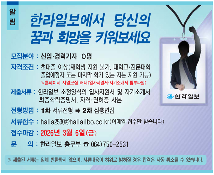 [알림] 한라일보에서 당신의 꿈과 희망을 키워보…