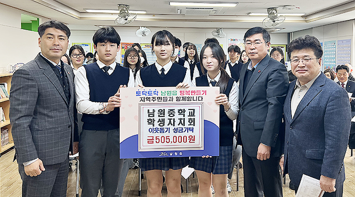 이날 전달된 성금은 남원중학교 학생자치회 주관으로 전교생이 참여하는 플리마켓 수익금을 모아 마련됐다.