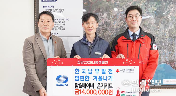 한국남부발전 남제주빛드림본부(본부장 한양석)은 최근 안덕면사무소에서 저소득층 출산가정을 위한 출산지원 '맘&베이비 온기 키트' 1400만원 상당을 제주사회복지공동모금회(회장 강지언)를 통해 기탁했다.