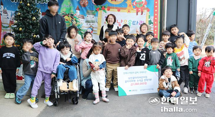 초록우산 제주지역본부(본부장 김희석)는 지난 7일 제주시 조천읍에 장애 통합 어린이집인 낮은울타리어린이집(원장 전연경)으로부터 지역사회 내 취약계층 아동을 돕기 위한 장터 수익금을 106만원을 전달받았다.