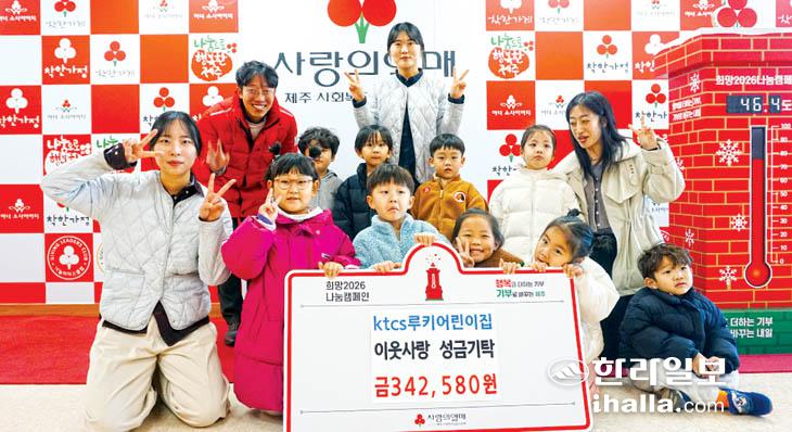 KTCS 루키 어린이집(원장 이하나)은 최근 제주사회복지공동모금회(회장 강지언)에 이웃사랑 성금 34만2580원을 기탁했다.