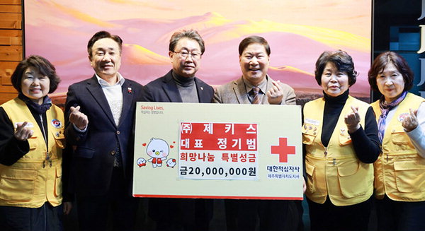 [한라일보] (주)제키스(대표 정기범)는 지역사회 나눔 실천의 일환으로 대한적십자사 제주특별자치도지사(회장 정태근)에 희망나눔 특별성금 2000만원을 기탁했다.