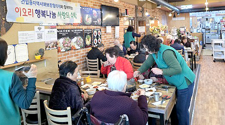 제주시 건입동지역사회보장협의체(위원장 김영숙·김미성)는 지난 15일 이오리 동문점(대표 서연희)에서 건입동 내 지역 어르신들과 소외계층을 위한'행복나눔 사랑의 식탁'무료식사 제공 행사를 진행했다.