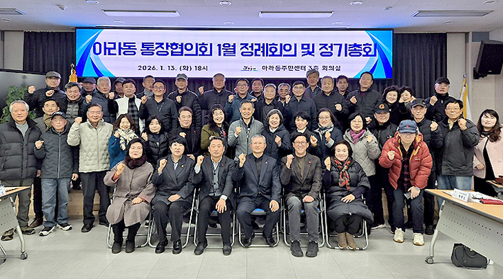 제주시 아라동통장협의회(회장 오한규)는 지난 13일 아라동장 등 50여 명이 참석한 가운데 2026년 1월 정례통장회의 및 정기총회를 개최했다.