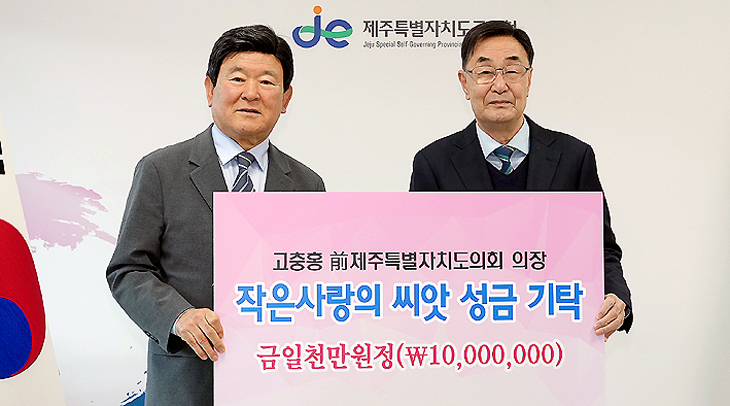 [한라일보] 고충홍 전 제주특별자치도의회 의장이 지난 14일 제주특별자치도교육청에 '작은 사랑의 씨앗' 성금 1000만원을 기탁했다.