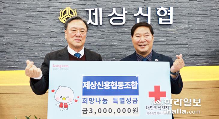 제상신용협동조합(이사장 김병식)은 최근 대한적십자사 제주특별자치도지사(회장 정태근)에 희망나눔 특별성금 300만원을 기탁했다.