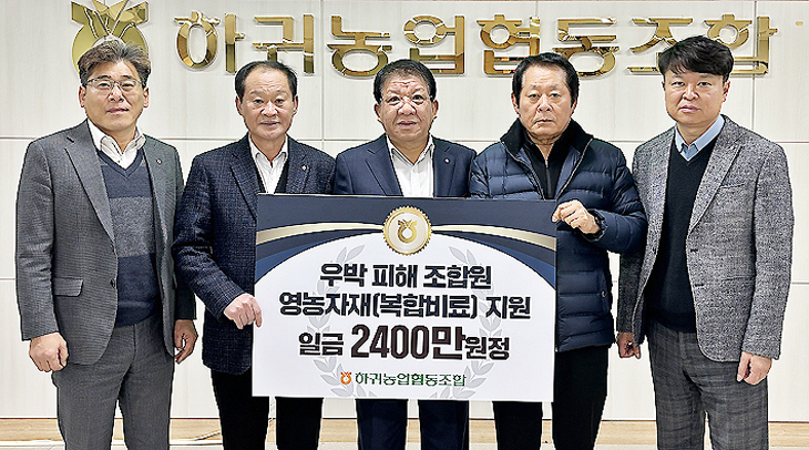 하귀농협(조합장 강병진)은 지난 20일 하귀농협복지센터에서 지난해 갑작스러운 우박으로 농작물 피해를 입은 조합원 86명을 대상으로 총 2400만원 상당의 복합비료를 지원했다.
