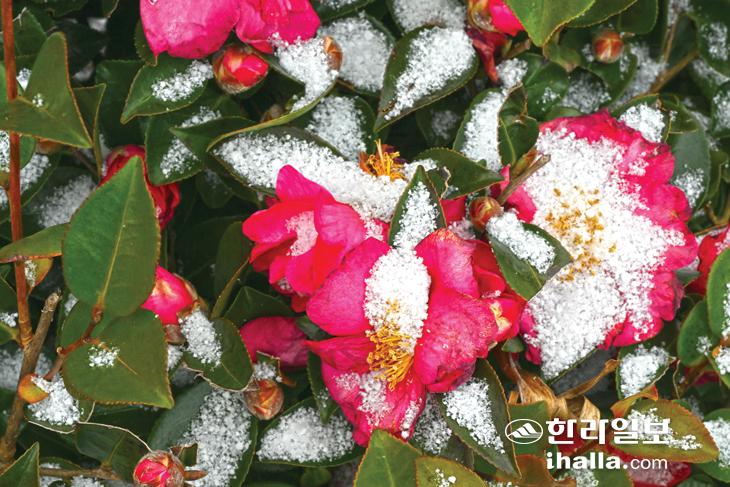 눈 이불 덮은 애기동백꽃