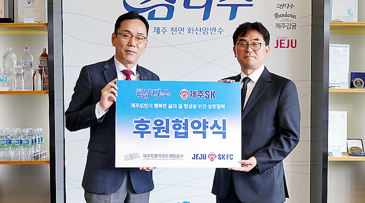 이번 후원 협약에 따라 제주특별자치도개발공사는 제주SK의 공식 후원사로서 광고후원금 및 선수단 음용 생수를 지원한다.