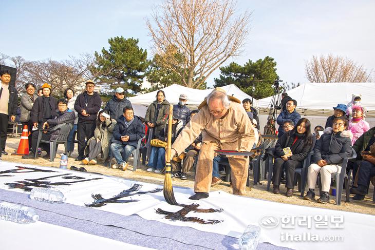 성안기행 서귀포도… 붉은 말의 해 휘호 퍼포먼스