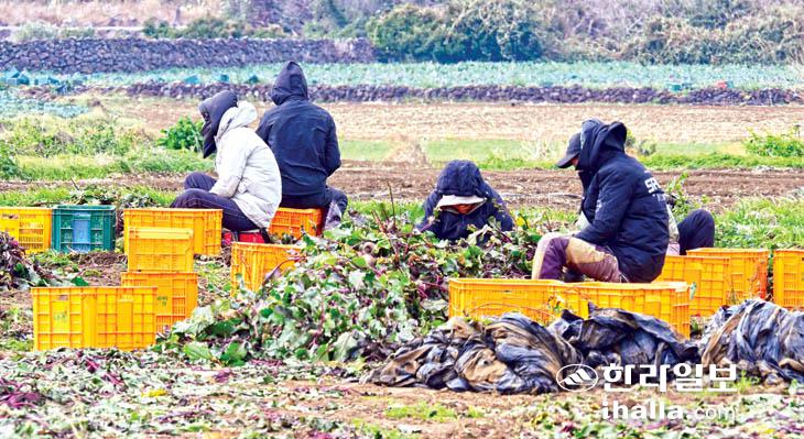 [한라일보] 27일 제주시 한경면 용수리에서 농민들이 비트 수확작업을 하고 있다. 강희만기자