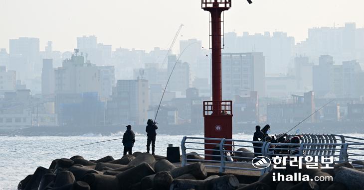 제주 찬바람에 잔뜩 움츠린 관광객들