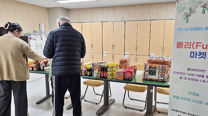 서귀포시 중앙동(동장 서은미)은 지난 28일 주민들의 기부로 마련된 풀리(Fully) 마켓을 열어 지역 내 취약계층 21가구에 라면, 통조림, 햇반 등 식품을 지원했다.