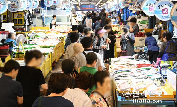 이른바 '밥상 물가'를 반영하는 신선식품지수는 전년 동월 대비 3.7% 상승했다.신선채소는 2.6% 하락했지만 신선과실이 3.1% 올랐고, 신선어개는 13.6% 상승했다. 신선어개 상승률은 3개월 연속 10%대를 기록하고 있다.