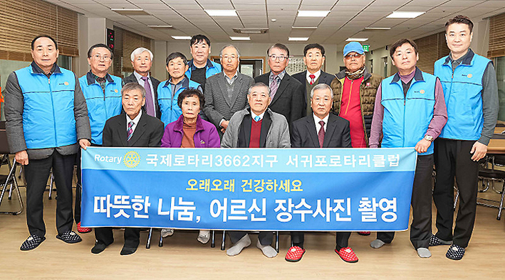 국제로타리 3662지구 서귀포로타리클럽(회장 강성종)은 지난달 30일 회원 10여 명이 참여한 가운데 서귀포시 하효동 노인경로당, 신효동 노인경로당을 찾아 마을 어르신 35명의 장수 사진을 촬영하는 봉사활동을 실시했다.