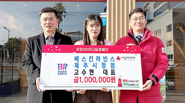 [한라일보] 배스킨라빈스 제주시청점(대표 고수현)은 최근 제주지역 내 어려운 이웃을 돕기 위한 이웃사랑 성금 100만원을 제주사회복지공동모금회(회장 강지언)에 지정 기탁했다.