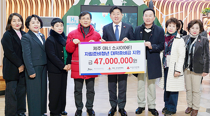 이번 성금은 제주특별자치도·제주아너소사이어티·제주사회복지공동모금회가 3자 협약을 맺고 추진 중인 '자립준비청년 대학준비금 지원사업'의 일환으로 마련됐다.