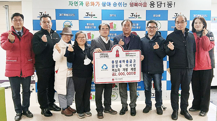 용담새마을금고(이사장 김상주)는 지난 2일 설 명절을 맞아 어려운 이웃을 위해 사용해 달라며 제주시 용담1동에 성금 200만원을 기탁했다.