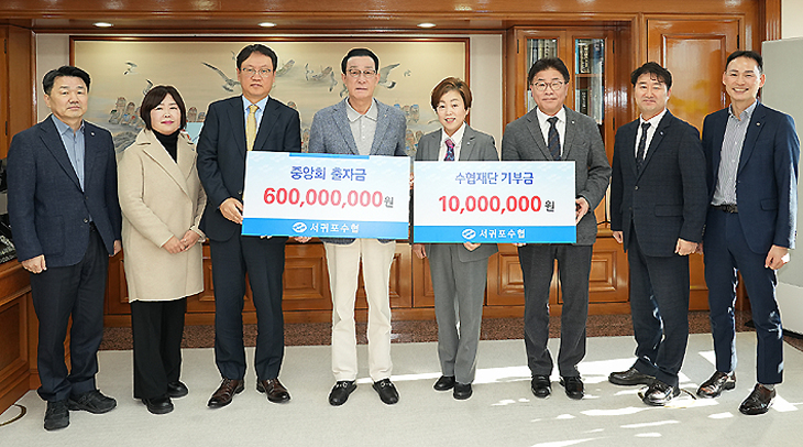 서귀포수산업협동조합(조합장 김미자)은 지난 3일 수협중앙회에서 출자금과 수협재단 기부금을 전달했다.