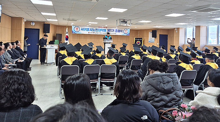 대한노인회서귀포시지회(지회장 한성율)는 지난 4일 부설 서귀포시노인대학원(원장 오순명) 대강당에서 제11기 졸업식을 개최해 49명에게 졸업증서를 수여했다.