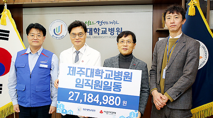이번 성금은 제주대병원 전직원이 도내 어려운 이웃들을 위해 자발적으로 기본급의 0.5%씩을 모아 마련한 것으로, 제주사회복지공동모금회를 통해 도내 취약계층 지원비 등으로 사용될 예정이다.