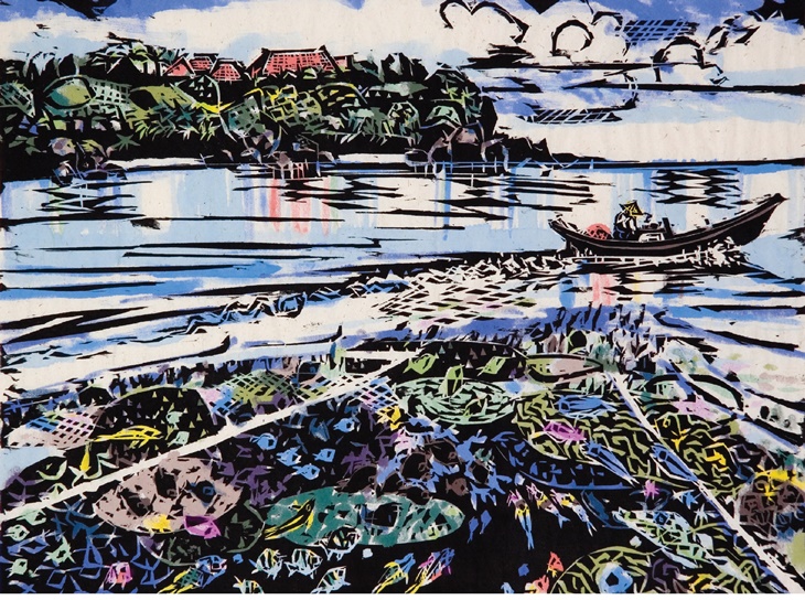 나카 보쿠넨의 '부세나곶'. 예나 지금이나 한결같이 평화로운 풍경의 오키나와를 그린 판화 작품이다. 제주4·3평화재단 제공