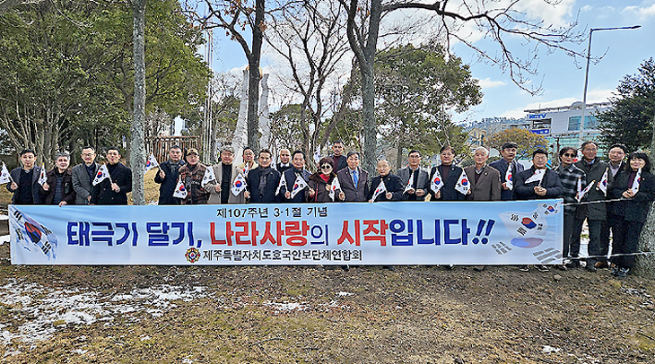 제주도호국안보단체연합회(회장 김달수)는 9일 도 향군회관에서 간담회를 개최해 해난구조대전우회의 신규 가입을 승인하고 올해 주요 안보 사업 계획을 확정했다. 또한 '범도민 태극기 달기 운동' 거리 캠페인을 전개하며 순국선열의 위업을 기리는 데 앞장섰다.