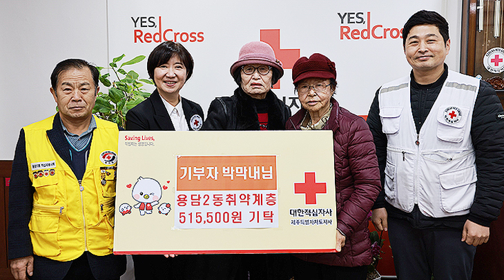 박막내 씨는 지난 5일 대한적십자사 제주특별자치도지사(회장 정태근)를 찾아 제주시 용담2동 내 취약계층을 돕기 위해 써달라며 제주적십자사에 후원금 51만5500원을 기탁했다.