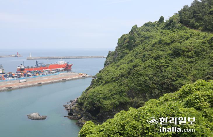 사라봉과 별도봉. 오른쪽은 사라오름, 왼쪽은 별도봉이다. 제주항에서 촬영. 김찬수