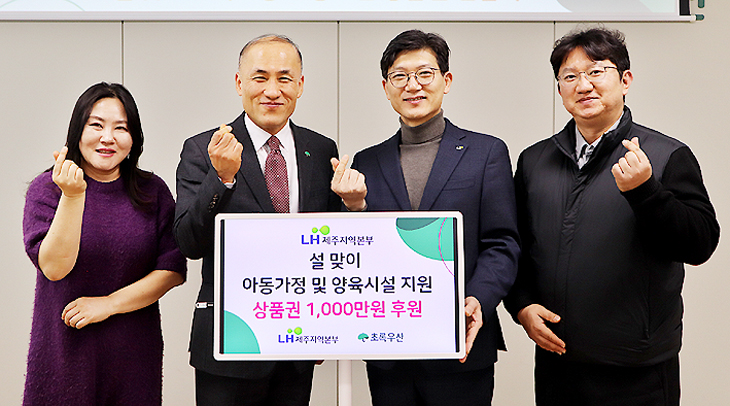 초록우산 제주지역본부(본부장 김희석)는 지난 9일 LH 제주지역본부(본부장 문정만)로부터 설을 맞아 온누리상품권 1000만원을 전달받았다.